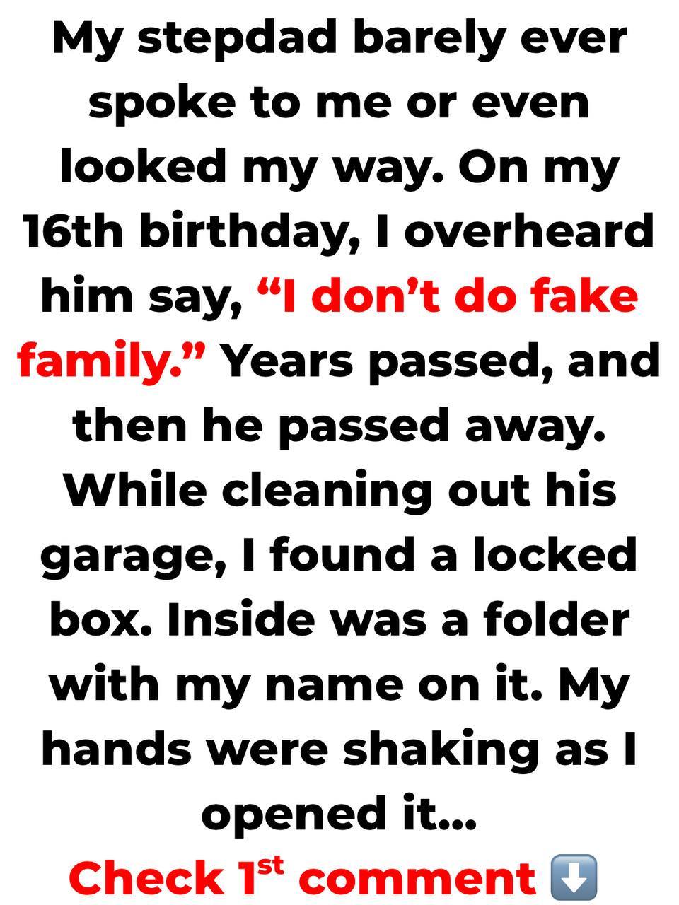 He’d walk past me without a word and never came to school events. On my 16th birthday, I heard him tell Mom, “I don’t do fake family.” When he died, I cleaned his garage.