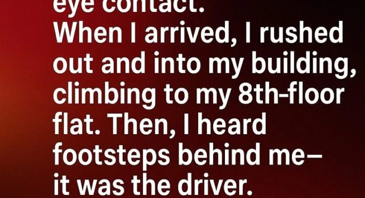 I was alone in a taxi at 3 a.m. The driver kept silently making eye contact. When I arrived, I rushed out and into my building, climbing to my 8th-floor flat.