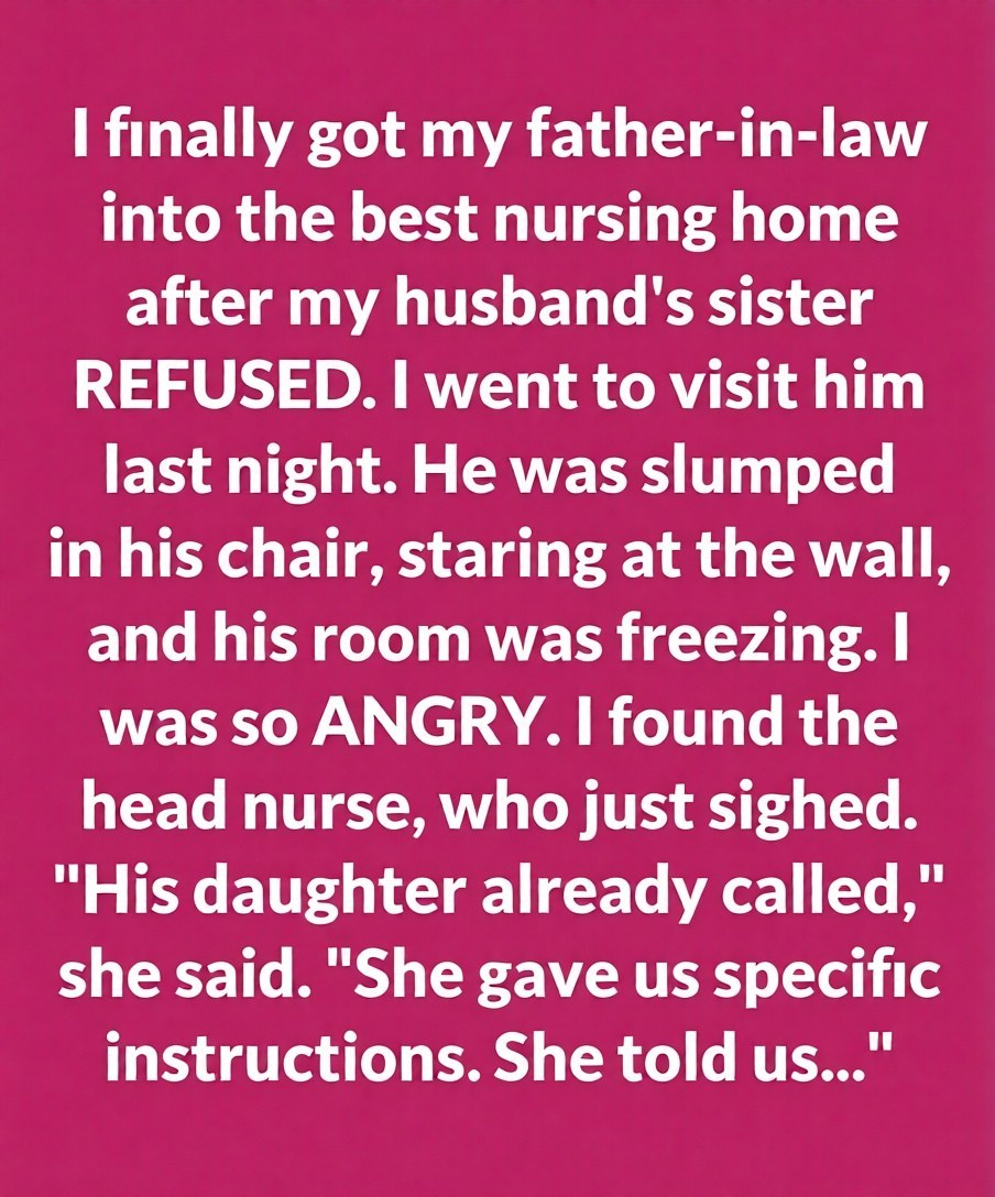 Legally speaking, the only immediate family my father-in-law had left was his daughter, Diane. And Diane had always prioritized spa getaways and wine tastings over anything that resembled responsibility. I went back into his room and draped another blanket around his shoulders.