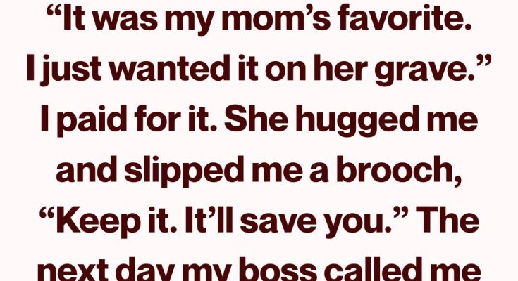 It was a small brooch—delicate, old-fashioned, shaped like a flower with a tiny blue stone in the center. I tried to refuse, but she shook her head, already backing toward the door.