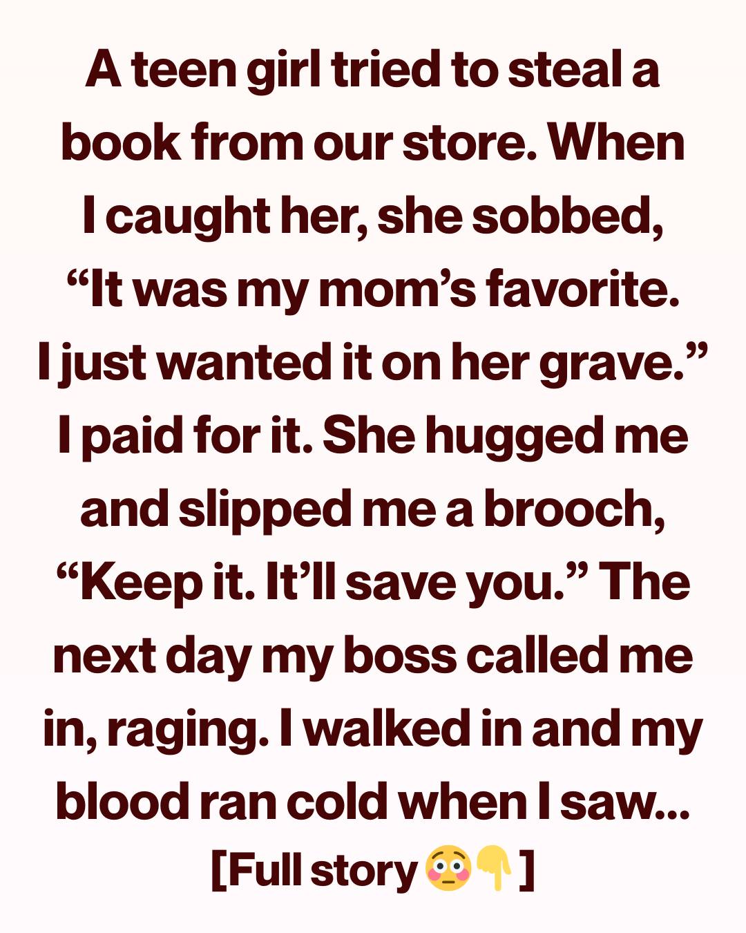 Full, shaking sobs that seemed too heavy for such a small frame. “I wasn’t trying to steal for fun,” she cried. “It was my mom’s favorite book.
