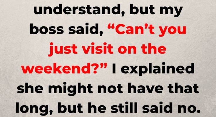 Instead, my boss looked at me and went, “Can’t you visit on the weekends?” I tried to stay calm and explained, “She might not make it to the weekend.”