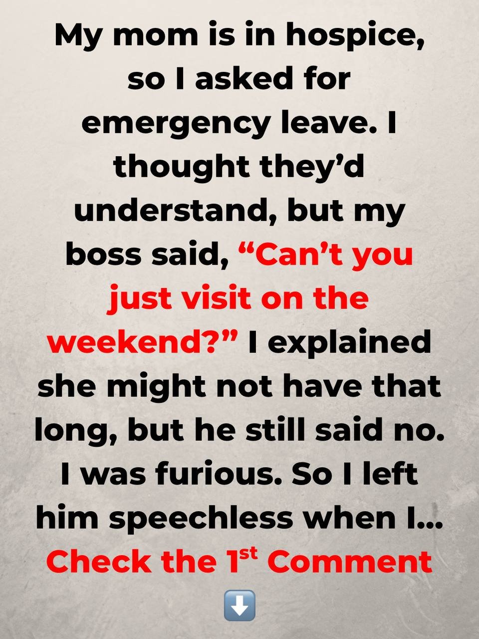 This just happened and I’m still kind of shaking. My mom’s in hospice, and I requested emergency leave from work because I might not have much time left with her.