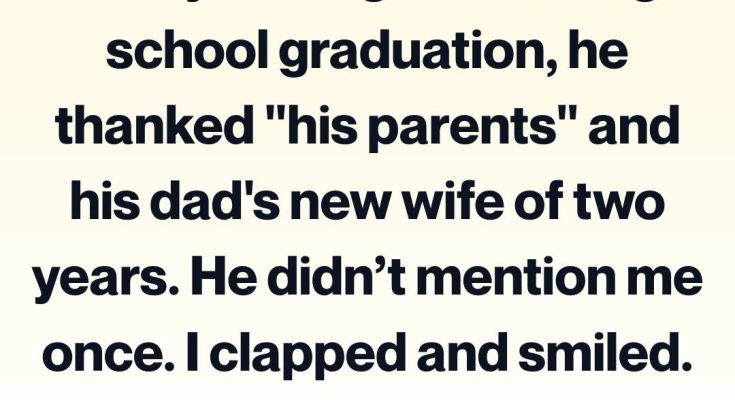 After the ceremony, families rushed into the aisles for photos. I kept telling myself to swallow it, to smile, to pretend it didn’t hurt. But when I saw him posing with his dad and stepmom, thanking them again as others congratulated them, something in me refused to stay silent.