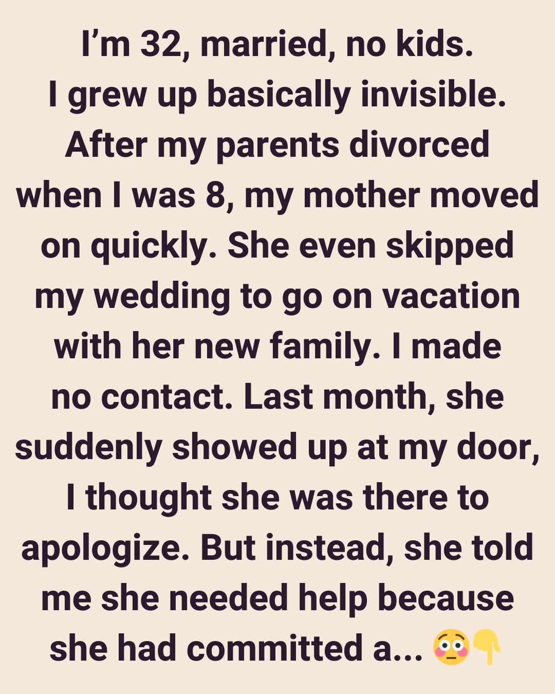 I asked her to leave. She begged me not to do that, but I closed the door. For a moment, I felt relieved, like I had finally stood up for the child she had left behind.