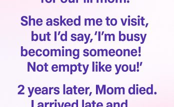 I left my home at 18. My twin sister stayed for our ill mom. She asked me to visit, but I’d say, “I’m busy becoming someone! Not empty like you!” …