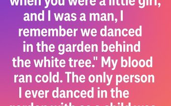 My son said, “Mommy, when you were a little girl, and I was a man, I remember we danced in the garden behind the white tree.” My blood ran cold. …