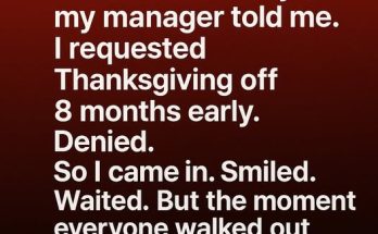 I was the only one working holidays for 4 years. “No kids means no holidays,” my manager told me. I requested Thanksgiving off 8 months early. Denied. So I came …
